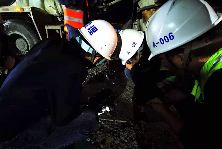 據(jù)悉,本次澆筑混凝土量達(dá)到1400立方,屬大體積混凝土澆筑,控制混凝土溫升、延緩降溫速度、減少混凝土收縮、提高混凝土極限拉伸是施工控制關(guān)鍵點(diǎn)。茂名港務(wù)中心項(xiàng)目管理部全體管理人員發(fā)揮“敢打硬仗、能打硬仗”的優(yōu)良作風(fēng),日夜奮戰(zhàn)在施工一線,精心組織策劃,明確方案中混凝土入模溫度、鋼筋偏移、模板跑偏、澆筑流程等質(zhì)量控制要點(diǎn),扎實(shí)做好施工交底工作,抓細(xì)過(guò)程管控,合理調(diào)配生產(chǎn)資源,確保了工程進(jìn)度、質(zhì)量、安全文明施工可控,有效保障大體積混凝土的澆筑質(zhì)量。經(jīng)過(guò)充分的準(zhǔn)備,場(chǎng)芯第一塊底板開(kāi)始澆筑,數(shù)十輛攪拌車來(lái)回作業(yè)為其補(bǔ)充混凝土,每個(gè)環(huán)節(jié)緊密相扣,經(jīng)過(guò)25多個(gè)小時(shí)爭(zhēng)分奪秒的奮戰(zhàn),在2月3日晚上,第一塊底板順利完成澆筑。