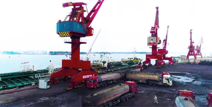 2021年元月,集團(tuán)下屬中油王港公司、港口經(jīng)營(yíng)公司作業(yè)區(qū)內(nèi)裝載車(chē)輛穿梭如流、門(mén)吊裝卸不停,一派繁忙景象。