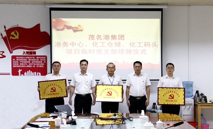 5月12日下午,在博賀新港區(qū)項目會議室,茂名港集團(tuán)組織舉行了簡單而莊嚴(yán)的項目臨時黨支部授牌儀式,為茂名港務(wù)中心、東區(qū)化工碼頭和東區(qū)化工倉儲三個項目臨時黨支部授予牌匾。集團(tuán)黨委副書記、工會主席肖炳璋,集團(tuán)黨委委員、副總裁楊超燦,黨群工作部、項目部黨員代表和施工單位及監(jiān)理單位代表共40多人參加了授牌儀式。