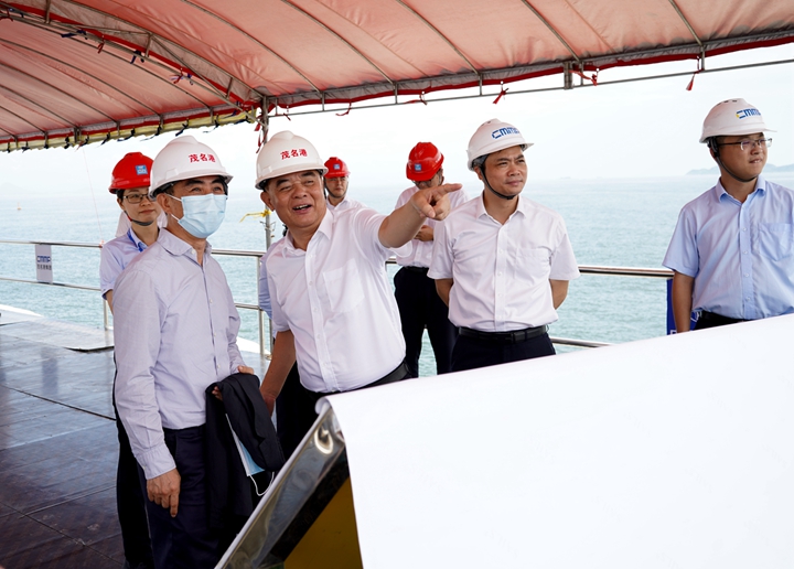 陳林夕一行深入到茂名港博賀新港區(qū),實(shí)地考察了茂名港博賀新港區(qū)各省市重點(diǎn)項(xiàng)目的推進(jìn)情況?疾熘,陳林夕對(duì)博賀新港區(qū)宏大的總體規(guī)劃和蓬勃的發(fā)展態(tài)勢(shì)表示贊嘆。他表示,港口建設(shè)事關(guān)茂名市經(jīng)濟(jì)建設(shè)的百年大計(jì),茂名港集團(tuán)作為市屬企業(yè)的“排頭兵”,發(fā)展前景十分廣闊,擁有較好的發(fā)展?jié)摿皡^(qū)位資源優(yōu)勢(shì)。他希望,以本次調(diào)研為契機(jī),充分發(fā)揮國(guó)家開(kāi)發(fā)銀行金融服務(wù)優(yōu)勢(shì),以茂名港集團(tuán)重點(diǎn)項(xiàng)目為抓手,建立緊密的合作關(guān)系,提供契合集團(tuán)發(fā)展方向的創(chuàng)新金融服務(wù),攜手茂名港集團(tuán)實(shí)現(xiàn)互利共贏,共同推動(dòng)茂名地區(qū)經(jīng)濟(jì)發(fā)展。