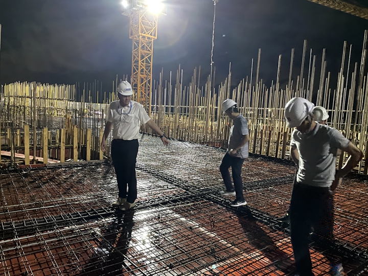 梁板的澆筑必須進(jìn)行連續(xù)施工方能保證質(zhì)量。由于施工作業(yè)面廣、作業(yè)時(shí)序長,茂名港務(wù)中心項(xiàng)目經(jīng)理部組織參建單位作了充分的施工交底,進(jìn)行了作業(yè)前各前置工序的復(fù)查,要求保質(zhì)保量完成每一道施工工序,并強(qiáng)調(diào)了夜間作業(yè)安全措施、輪班換班要求;提前與混凝土供應(yīng)商進(jìn)行溝通聯(lián)系,做足了材料準(zhǔn)備,確保現(xiàn)場澆筑工作的連續(xù)性。