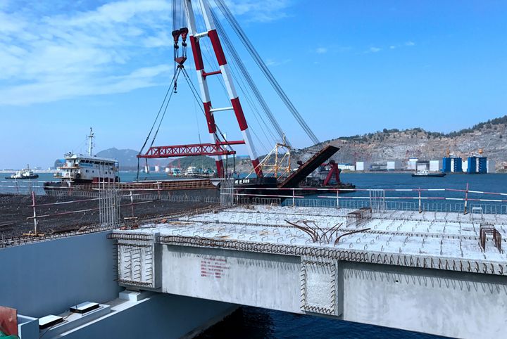 博賀新港區(qū)建設(shè)現(xiàn)場(chǎng)往來工程車輛川流不息,工地人員各司其職,各項(xiàng)工序有條不紊,處處展現(xiàn)出一派熱火朝天的建設(shè)景象。