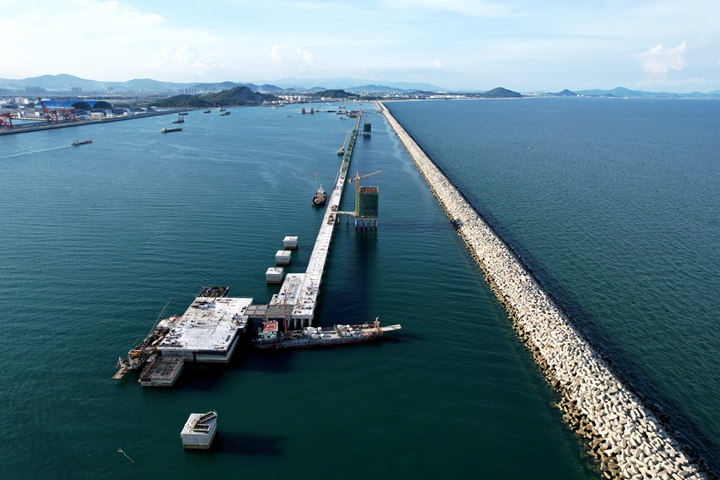 6月29日下午,茂名港博賀新港區(qū)東區(qū)油品碼頭工程水域公用管廊棧橋現(xiàn)澆面層完成澆筑,完成了油品碼頭項(xiàng)目公共管廊橋與碼頭全面貫通,實(shí)現(xiàn)了“海陸對接”,一舉貫通了博賀新港區(qū)的“大動(dòng)脈”。