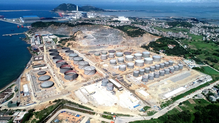 茂名港博賀新港區(qū)東區(qū)化工倉(cāng)儲(chǔ)項(xiàng)目完成罐體安裝,項(xiàng)目總體進(jìn)度完成82%;