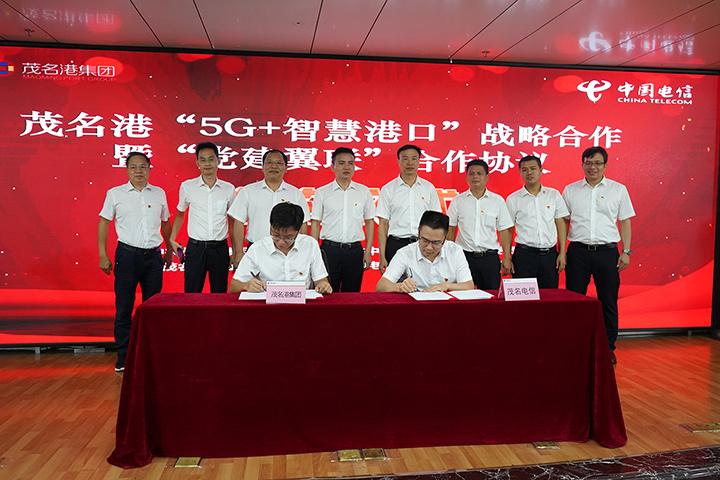 9月7日,茂名港集團(tuán)與茂名電信舉辦“5G+智慧港口”戰(zhàn)略合作簽約暨“黨建翼聯(lián)”黨組織結(jié)對共建合作簽約儀式,雙方將探索共建茂名港智慧港口5G標(biāo)桿項目,全面提升茂名港數(shù)字化運營能力。茂名港集團(tuán)黨委書記、董事長王志華,中國電信茂名分公司黨委書記、總經(jīng)理李圣祥,副總經(jīng)理馮光星、胡榮臻等出席儀式,并見證《5G+智慧港口戰(zhàn)略合作協(xié)議》《黨建翼聯(lián)黨組織結(jié)對共建合作協(xié)議》的簽訂。