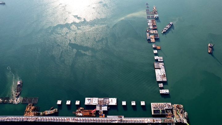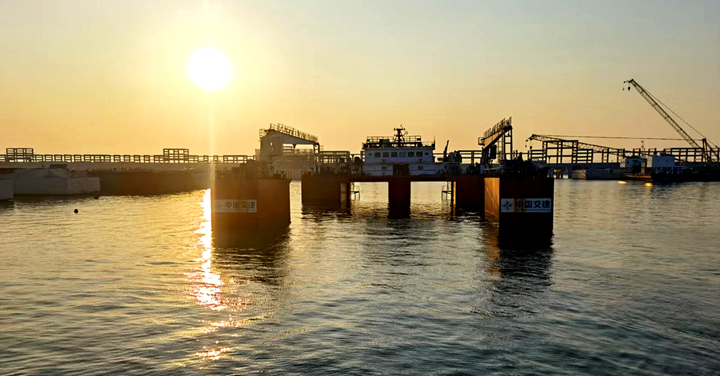 本項目52個沉箱全部一次順利安裝完成,提前完成重要節(jié)點計劃,為下一步碼頭上部結(jié)構(gòu)的施工提供了工作面,也為下一節(jié)點目標(biāo)的如期建設(shè)創(chuàng)造了良好條件。(古智斤) |