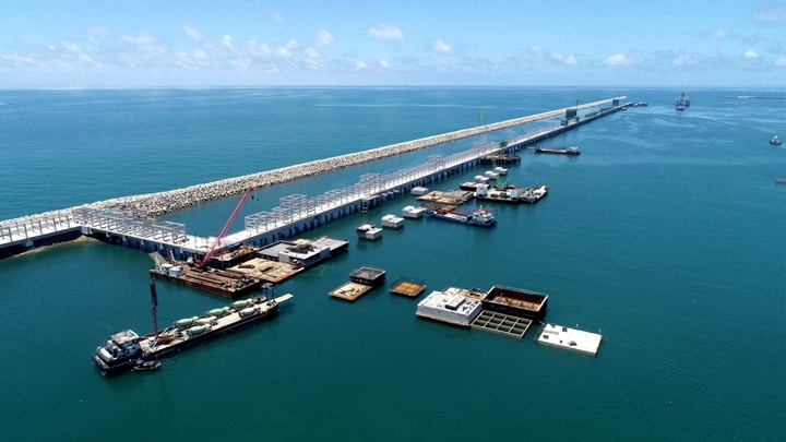 ▲茂名港務(wù)中心項(xiàng)目 在這乘風(fēng)破浪、跨越發(fā)展的十年里,茂名港深水大港崢嶸初現(xiàn),碩果累累——實(shí)現(xiàn)資產(chǎn)規(guī)模和融資規(guī)!半p百”目標(biāo),為濱海新區(qū)基礎(chǔ)設(shè)施建設(shè)和茂名港集團(tuán)發(fā)展提供資金保障,融資平臺(tái)作用凸顯;自建、參建省市重點(diǎn)項(xiàng)目超30個(gè),推動(dòng)博賀新港區(qū)東西防波堤、10萬(wàn)噸級(jí)成品油碼頭、東區(qū)化工碼頭、東區(qū)化工倉(cāng)儲(chǔ)、粵西LNG造陸項(xiàng)目、茂名港務(wù)中心、博賀灣大橋、供水工程等一批省市重點(diǎn)項(xiàng)目建設(shè)投用,充分發(fā)揮濱海新區(qū)項(xiàng)目建設(shè)主體作用,加快推進(jìn)口岸開(kāi)放工作,為茂名經(jīng)濟(jì)實(shí)現(xiàn)高質(zhì)量發(fā)展增添動(dòng)力。 前瞻布局,打造南海能源新通道,積極融入茂名“向海而興”發(fā)展大局。