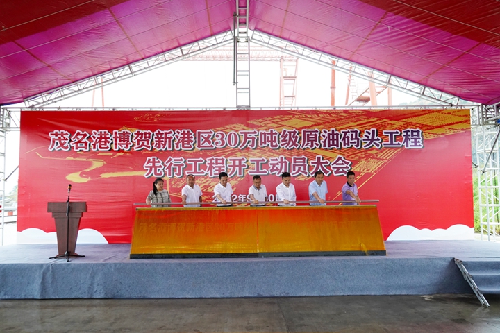 張有欽指出,茂名港博賀新港區(qū)30萬噸級原油碼頭工程先行工程開工動員活動是落實市委、市政府“建深水大港、興濱海綠城”發(fā)展戰(zhàn)略工作部署的具體行動,將有力推動濱海新區(qū)打造千億級臨港產(chǎn)業(yè)集群。希望茂名港集團在確保質(zhì)量安全的前提下,力爭30萬噸級原油碼頭項目早日建成投產(chǎn),為茂名市、濱海新區(qū)高質(zhì)量發(fā)展夯實基礎(chǔ)、積蓄后勁。濱海新區(qū)各相關(guān)部門要強化大局意識、服務(wù)意識、責(zé)任意識和協(xié)作意識,優(yōu)化建設(shè)環(huán)境、提高行政效能,積極主動做好協(xié)調(diào)服務(wù),幫助解決困難和問題,確保項目順利實施、加快建設(shè)。 王志華表示,茂名港博賀新港區(qū)30萬噸級原油碼頭工程是茂名港進一步提升港口等級的標(biāo)志性工程,對完善博賀新港區(qū)碼頭布局、豐富港口服務(wù)功能、提升港口競爭力具有重要意義。他要求,集團上下要以這次動員大會為新的起點,全力推進全年重點項目建設(shè)目標(biāo)圓滿完成。一是堅定信心,提高政治站位,要緊緊圍繞“建深水大港、興濱海綠城”發(fā)展戰(zhàn)略,切實增強抓項目穩(wěn)發(fā)展的責(zé)任感緊迫感,把思想統(tǒng)一到全市抓項目促投資150天大會戰(zhàn)動員會議的工作部署上來,加快推進30萬噸級原油碼頭順利實施。二是真抓實干,積極主動作為,按照市委、市政府關(guān)于茂名港口岸擴大開放工作部署,集中力量,細(xì)化量化推進項目流程和節(jié)點任務(wù),全力推進博賀新港區(qū)碼頭建設(shè),確保全面完成各項目建設(shè)目標(biāo),助力茂名港順利實現(xiàn)口岸擴大開放。三是加強黨的領(lǐng)導(dǎo),樹牢廉政風(fēng)險防范意識,強化底線思維和紅線意識,以優(yōu)良作風(fēng)推動項目建設(shè),以項目建設(shè)錘煉干部作風(fēng),努力打造茂名港口建設(shè)的優(yōu)質(zhì)工程、廉潔工程,推動茂名港集團高質(zhì)量發(fā)展。 程志磊表示,中交一航局二公司將秉承“寧讓汗水漂起船、不讓工期拖一天”的光榮傳統(tǒng),堅決扛起央企政治責(zé)任,全面貫徹落實各項工作要求,集中優(yōu)質(zhì)資源、調(diào)集精干力量,發(fā)揮技術(shù)、裝備和人才優(yōu)勢,嚴(yán)把工程安全關(guān)、質(zhì)量關(guān)、進度關(guān),確保茂名港博賀新港區(qū)30萬噸級原油碼頭項目早日建成投產(chǎn),為茂名現(xiàn)代化濱海城市建設(shè)貢獻力量!