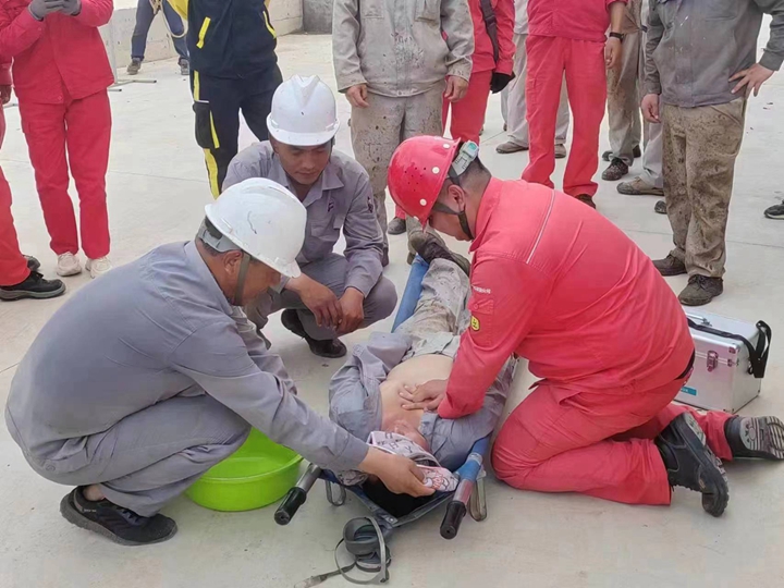 化工倉儲項目經(jīng)理部開展高溫中暑演練,反應及時,處置有序。 蔡光章要求,各單位一要高度重視應急演練。嚴格按照演練頻次加強演練,將“紙上談兵”轉(zhuǎn)化為“真槍實干”,使演練常態(tài)化、實戰(zhàn)化,以實戰(zhàn)檢驗預案的科學性和可操作性,認真總結(jié)演練經(jīng)驗,查找存在問題和不足,做好演練成果轉(zhuǎn)化,不斷積累應急處置經(jīng)驗;二要全面普及應急知識。針對企業(yè)實際,假設(shè)不同類型的突發(fā)情況,有的放矢組織學習,突出現(xiàn)場處置的快速反應和科學處置,讓所有員工掌握應急救援的基本流程、方法和要求,學會自救互救等本領(lǐng);三要完善應急體系建設(shè)。樹立“大安全、大應急”理念,優(yōu)化應急機制,完善要素配置,加速推進應急管理體系和能力建設(shè)。補短板,強弱項,切實做好應急保障準備,確保關(guān)鍵時刻拉得出、沖得上、打得贏。