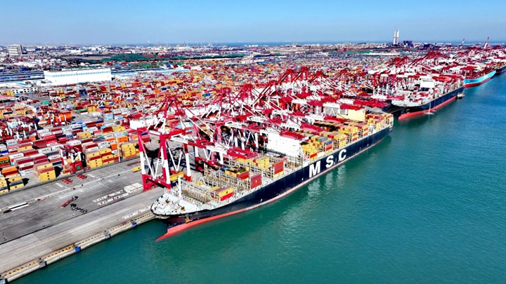 “我們聯(lián)合港口升級‘關(guān)港通’智慧查驗平臺,將涉港作業(yè)的11個環(huán)節(jié)優(yōu)化縮減至3個,單票貨物物流作業(yè)、繳費提離等辦理時間節(jié)省6小時以上,優(yōu)先查驗的鮮活易腐農(nóng)產(chǎn)品、AEO高級認證企業(yè)貨物平均調(diào)運時間縮短5小時,僅青島港區(qū)每年就可為企業(yè)節(jié)約綜合成本約3500萬元!秉S島海關(guān)查檢一處副處長俞挺說道。 此外,青島港將綠色低碳理念貫穿發(fā)展全鏈條,從油電拖輪、氫電拖輪投入使用,到全球首創(chuàng)空軌集疏運系統(tǒng);從高點站位、系統(tǒng)制定綠色低碳轉(zhuǎn)型規(guī)劃方案,到發(fā)布“碳中和”港口評價標準;從規(guī)模化投用新能源裝備,到建成全國港口首座加氫站、全面升級岸電設(shè)施,每一項舉措都充分印證了港口作為國民經(jīng)濟晴雨表,在綠色低碳發(fā)展中的責任擔當。