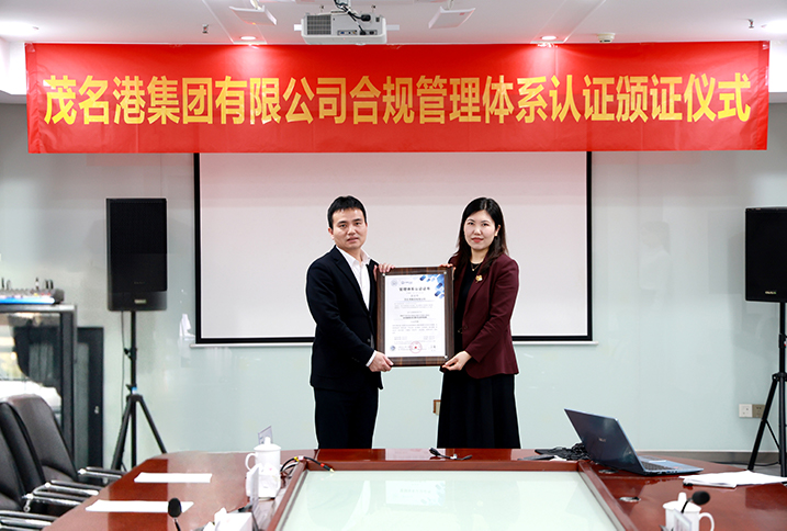 王謙對(duì)茂名港集團(tuán)在認(rèn)證過(guò)程中的表現(xiàn)及整體合規(guī)管理水平給予了高度評(píng)價(jià),并正式宣布集團(tuán)通過(guò)合規(guī)管理體系認(rèn)證。隨后,王謙代表中誠(chéng)信認(rèn)證公司,向茂名港集團(tuán)現(xiàn)場(chǎng)頒發(fā)ISO 37301:2021合規(guī)管理體系國(guó)際標(biāo)準(zhǔn)認(rèn)證證書(shū)與GB/T 35770-2022合規(guī)管理體系國(guó)內(nèi)標(biāo)準(zhǔn)認(rèn)證證書(shū),并對(duì)集團(tuán)表示衷心的祝賀。王謙進(jìn)行了《健全國(guó)企合規(guī)為高質(zhì)量發(fā)展保駕護(hù)航》專題內(nèi)容的分享。